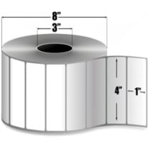Part Details: x White Paper Label - Thermal Transfer - Permanent Adhesive - Perforated - 0 - " Core - " Outer Diameter for Industrial Printers. Labels per Roll - Rolls per Case. Priced per Roll. Also Available as a Case (Part# AiRT-4-1-5500-3).
