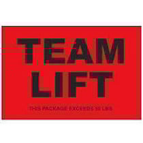 Part Details: Team Lift Shipping & Handling Labels. Fluorescent labels bring attention to sensitive packages. Size:2 x 3". Color: FLUORESCENT RED. Priced per roll of 500