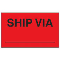 Part Details: Ship Via ____ Shipping & Handling Labels. Fluorescent labels bring attention to sensitive packages. Size:3 x 5". Color: FLUORESCENT RED. Priced per roll of 500