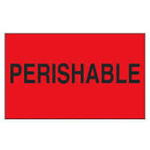 Part Details: Perishable Shipping & Handling Labels. Fluorescent labels bring attention to sensitive packages. Size:3 x 5". Color: FLUORESCENT RED. Priced per roll of 500
