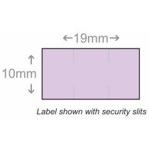 Part Details: Price Marking Label, 19 mm x 10 mm lavender label with permanent adhesive, security slits, 17,000 labels/sleeve, 15 sleeves/case. For use in the Monarch1110 price marking gun. Single case with MOQ of 1 case. Fifteen ink rollers included per case. Ink roller item # IRMN1019.