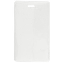 Part Details: Frosted-Back Flexible Vinyl Vertical Proximity Card Holder. use with a Strap Clip that Will "Lock-In" a Card When Attachment is Inserted Into Slot. Top Load with Slot & Chain Holes. Insert Size 3 7/16" X 2 1/8" (87 X 55mm). Quantity of 100.