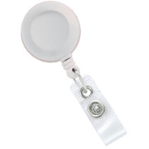 Part Details: Badge Reel, White, 1-1/4" (32mm), Plastic Clip-On Badge Reel, No Sticker, Reinforced Vinyl Strap with Slide-Type Belt Clip. Sold in quantities of 25. Priced per 25 units.