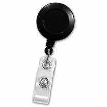 Part Details: Badge Reel, Black, 1-1/4" (32mm), Plastic Clip-On Badge Reel, with Clear Vinyl Strap, No Sticker with Slide-Type Belt Clip. Sold in quantities of 25. Priced per 25 units.