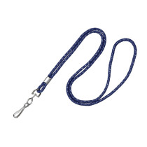 Part Details: 1/8" ROUND NAVY BLUE SILVER METALLIC LANYARD WITH NICKEL-PLATED STEEL CRIMP AND SWIVEL-HOOK, MINIMUM ORDER QUANTITY: 1 PACK, 100 PER PACK