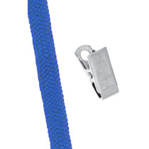 Part Details: Lanyard Standard, Royal, 3/8", Flat Woven Lanyard with Nickel Plated Steel Bulldog Clip. Sold in quantities of 100. Priced per 100 units.