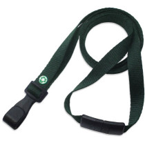 Part Details: Forest Green Recycled Pet 3/8" (10 mm) Flat Lanyard with Breakaway and "No-Twist" Wide Plastic Hook. Made of 100% Recycled Polyester. 36" (914 mm) Cut Length Prior to Assembley. Quantity of 100.