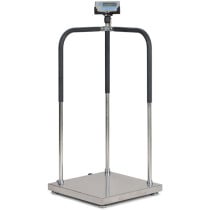 Part Details: MS140-300, 520 mm x 520 mm / 20.5" x 20.5", 660lb capacity medical scale with handrail and wheel kit. Operates on four AAA batteries or US adapter (both included). Some assembly required.