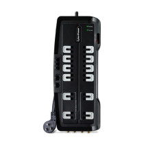 Part Details: 3150 J, 125 V, NEMA 5-15P 45 degree off-set plug, 12 NEMA 5-15R, 8 ft cord, Limited lifetime warranty