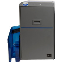 The Datacard SR300 uses retransfer printing technology that delivers vivid results with over-the-edge coverage for a wide range of applications. The SR300 two-sided printer processes cards in landscape orientation to minimize unwanted dye transfer. It also reproduces a wider color gamut than competitive offerings, which improves image gradation, tonal reproduction and image contrast. The SR300 also features enhanced security, with electronic locks controlling access to cards and ribbons. The printer also offers the security erase feature, which protects sensitive cardholder data by blocking out black text on used YMCK and YMCKF ribbons. An LCD panel provides helpful status updates for operators, while the 100-card input hopper can be refilled during printing. Ribbon and retransfer film cassettes simplify loading.