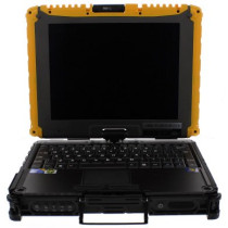 In one quick rotation the Getac V100-Ex2 Rugged Laptop transforms into a tablet PC. Designed with the industrial environment in mind the Getac V100-Ex2 is both MIL-STD 810G certified and IP65 compliant and composes of a magnesium alloy case, a shock-protected HDD, with sealed I/O caps and covers to prevent ingress damage.