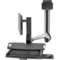 Part Details: Mounting Hardware & Stands - Ergotron - StyleView Combo Arm with Worksurface and Pan - Small CPU Holder - Polished Aluminum